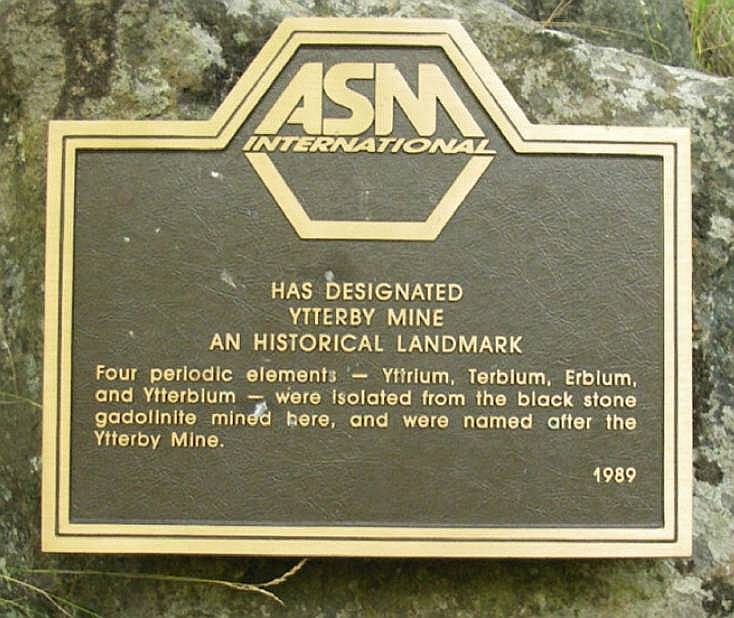 die alle nach der Mine beim Dorf Ytterby benannt wurden. Das Erz selbst taufte man zu Ehren Gadolins "Gadolinit".