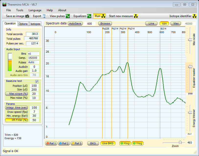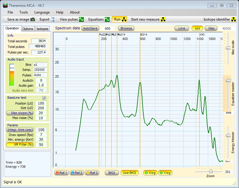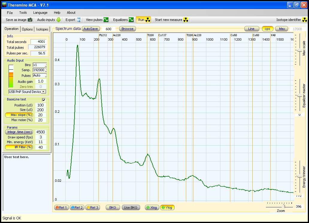 Es ist damit auch möglich eine "In-Situ Gamma-Spektroskopie" bis Energien zum Cs-137 hin zu machen, obwohl der Kristall eigentlich sehr klein ist. Die Erfahrungen