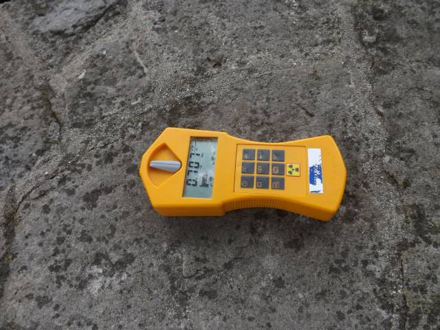Was aber in dem Gestein auch enthalten ist, ist offensichtlich Uran und einiges an Radium und daher kann man vor Ort eine deutliche