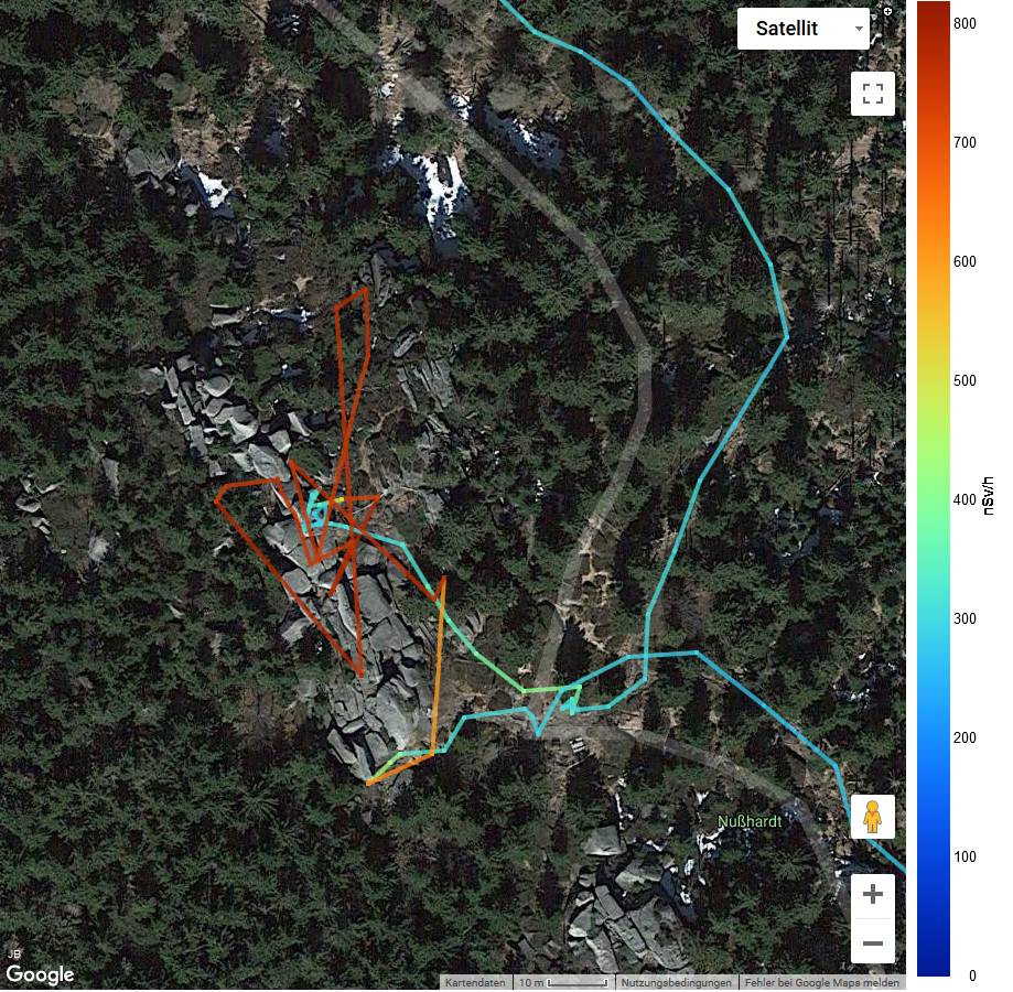 in der Umgebung des Granitfelds im Bereich des Gipfels einen sehr deutlichen Anstieg der Werte. Man kann sich dann auch gut vorstellen