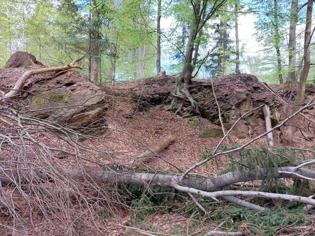 Von dort nimmt man den Weg nach Westen und findet des großen Schurf zwischen N48.239340, E7.338780 und
