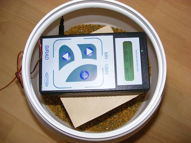Um ein Gefühl für die Exhalation von Radon aus verschiedenen Düngemitteln zu bekommen wurde wie beim Granit die Kanutonne als stark vereinfachte Messkammer benutzt. Als Messgerät wurde wieder der kommerzielle Radonmonitor SIRAD MR-106N der Firma Sinmor eingesetzt.