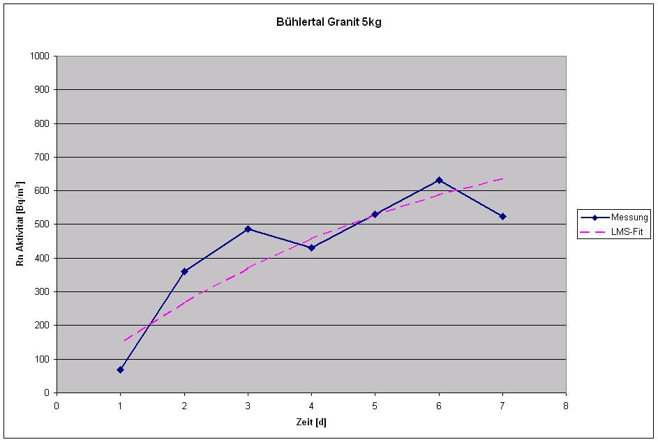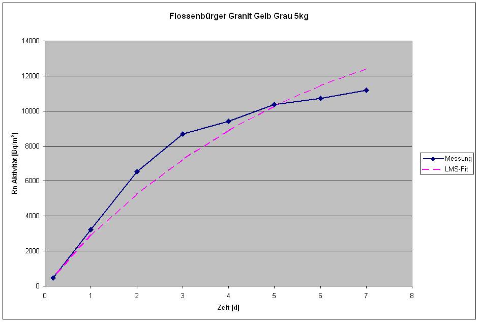Extrapolierter Aktivitätsendwert: 17250 Bq/m^3 (3520 Bq/(m^3*kg)