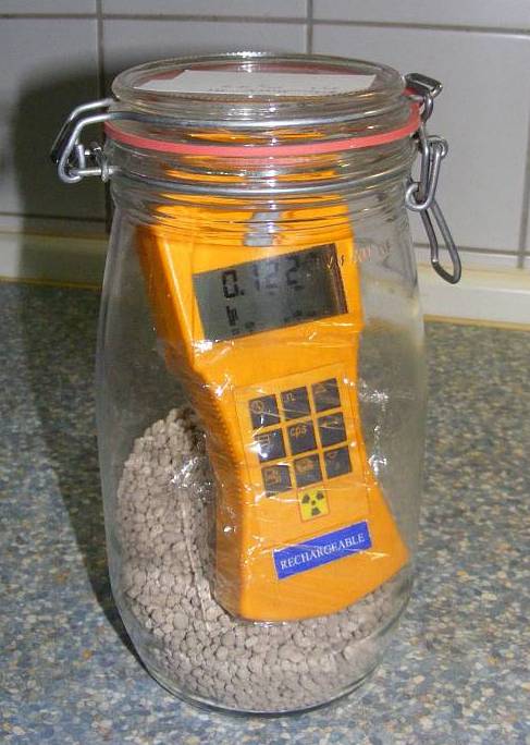 Es gibt ja schon etliche einheimische Landwirte, die an der Qualität ihrer Produkte auch wirklich interessiert sind und bisher gar nicht deutlich genug über den Urangehalt im Dünger und seine Gefahren informiert wurden. Und Nachprüfen konnten sie es erst recht nicht. Aber hier kommt nun die Beschreibung für einen einfachen Test mit einem Marmeladenglas und einer Kohlekomprette aus der Apotheke zum Selbertesten für jeden Landwirt mit Geigerzähler - wenn es die Düngemittelhersteller schon nicht tun.
