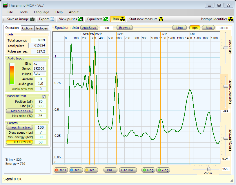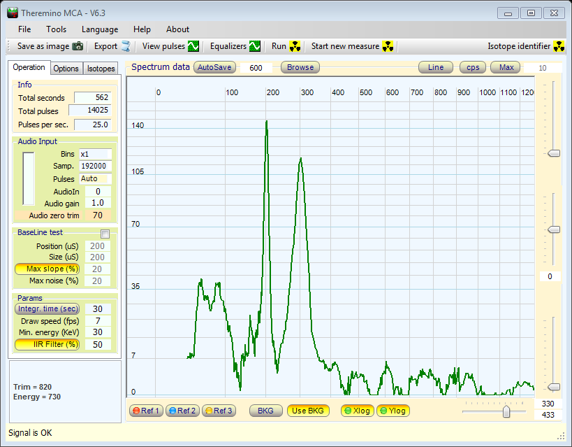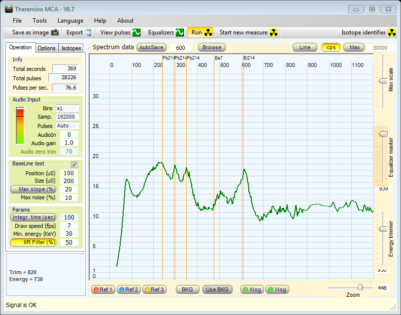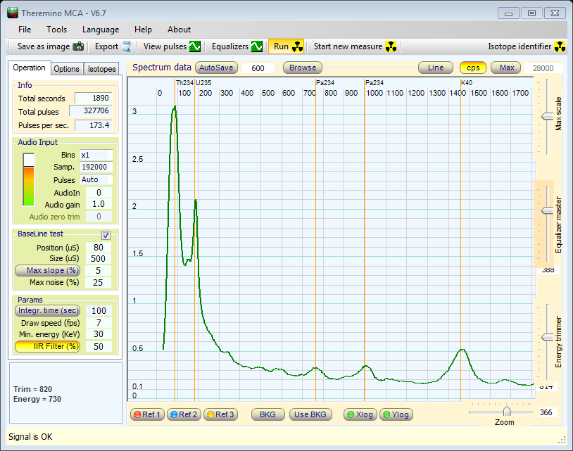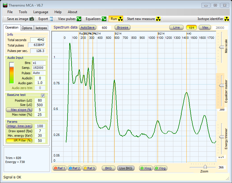 Wer einmal gesehen hat wie einfach heute eine Gamma-Spektroskopie zu machen ist, den läßt der Gedanke nicht mehr los, das auch zu probieren. Denn schließlich würde man ja schon gern wissen ob die gemessene Aktivität auf etwas Natürliches zurückzuführen ist oder nicht. Der Schlüssel für den Low-Cost Einstieg liegt in der Verwendung einer Soundkarte für den PC. Und da kommt man an einer Webseite kaum vorbei: theremino.com