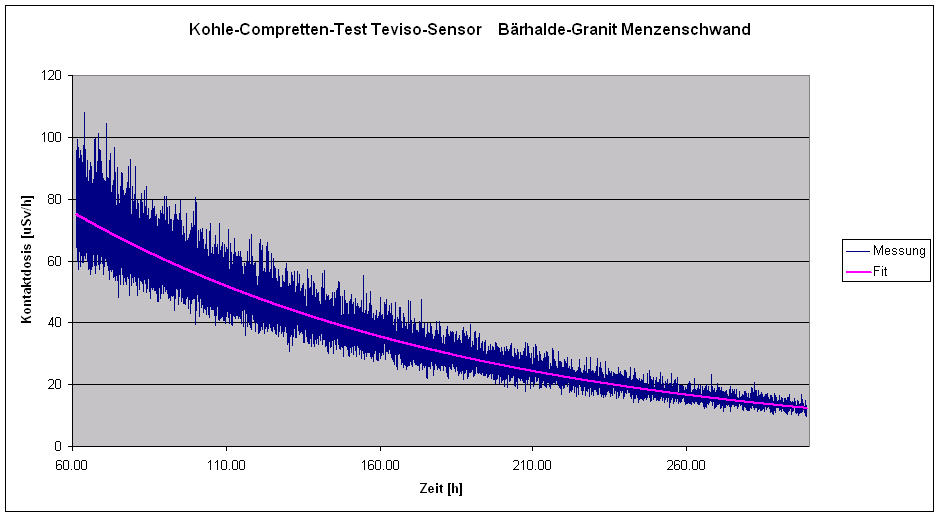 Der Kohlekomprettentest zum Urannachweis in Düngemittel und ähnlichen ProbenZu dem Thema der Externer Link zu www.youtube.com: Radonexhalation aus uranhaltigem Düngemittel gibt es hier von minimax.video auf youTube ein sehr lehrreiches Video. Er hat die Radonaktivität über Zeit mit einem Canary Radon Monitor vermessen.