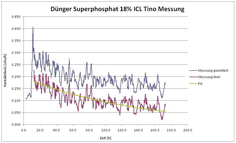 Der beste Weg sich das Rauchen abzugewöhnen ist also, sich ein wenig Superphosphat-Dünger über Ebay zu ersteigern und nachzumessen. Wenn man den richtigen Dünger erwischt, kann man nach einigen Tagen leicht mehrere 1000Bq/m^3 an Radon sehen, das als gasförmiges Radionuklid aus dem Dünger entweicht und in einer Kammer aufgestaut werden kann. Das Radon zerfällt bekanntlich weiter und nach einigen kurzlebigen Zerfallsprodukten taucht dann das Polonium-210 mit 138 Tagen Halbwertszeit auf, das es dann gut bis in die Lunge schafft. Die Nichtraucher müssen "leider" etwas länger warten bis das Sickerwasser aus den gedüngten Feldern das Uran ins Grundwasser mitnimmt und es dann über das Trink- und Mineralwasser getrunken werden kann ("Wohl bekomm's!"). Nur leider kann man sich das Wasser-Trinken im Gegensatz zum Rauchen nicht einfach abgewöhnen. Sollten also die Regierungen hier vielleicht was tun? Vielleicht sollte man sich wieder an den ALARA Grundsatz des Strahlenschutzes erinnern, zu dem sich viele Länder bekannt haben (ALARA: externer Link zu de.wikipedia.org), unter anderem auch die Bundesrepublik und die EU.