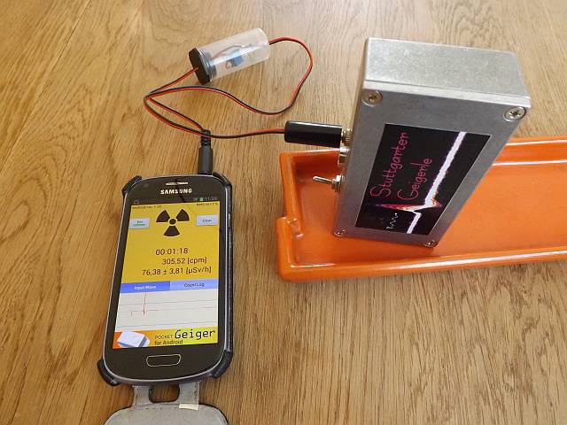 Rolf-Dieter Klein hat eine Android App entwickelt, welche den Kamerasensor als Detektor nutzt und so das Handy in einen Geigerzähler verwandelt. Bei einigen Geräten geht das sehr gut, weil es eine Unterstützung mit den Einstellparametern gibt, bei anderen aber funktioniert die App nicht auf Anhieb. Da der Kamera-Sensor einem PN-Dioden Detektor sehr ähnlich ist, gibt es bei der Einstellung einige Parallelen zum Stuttgarter Geigerle. Man kann von dieser App daher Einiges lernen, was den korrekten Komparator-Schwellwert anbelangt. Hier ist eine Beschreibung, die erklärt, wie man sich bei der Einstellung der App selbst helfen kann, wenn man das Funktionsprinzip verstanden hat.