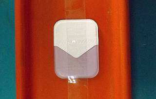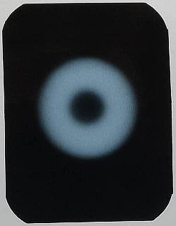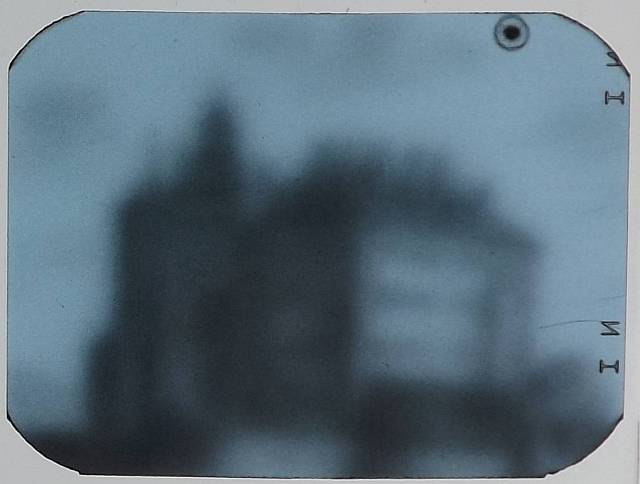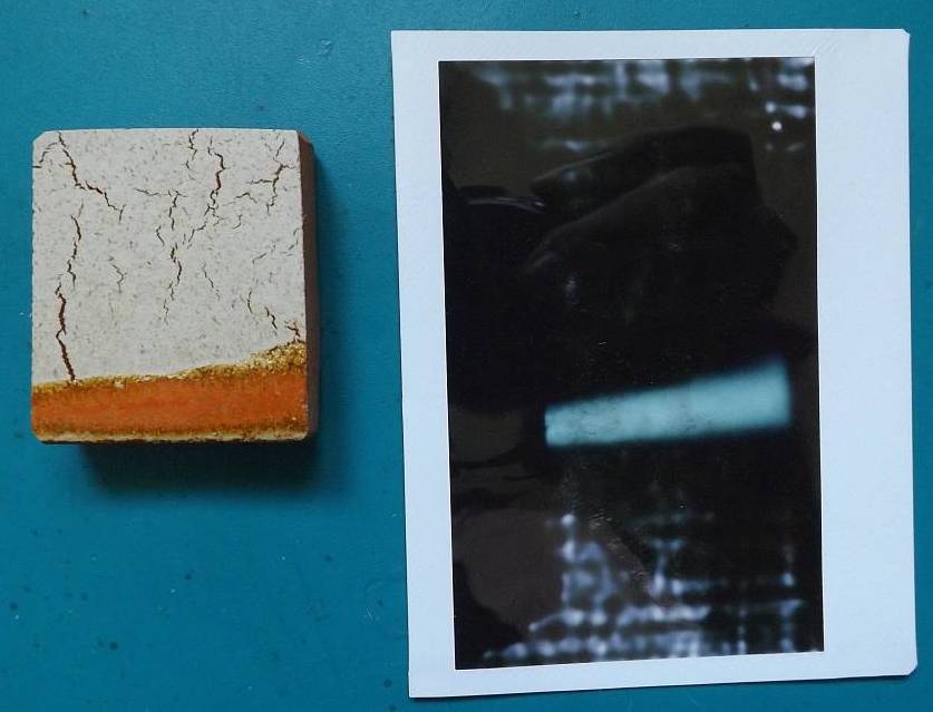 Wer dieses Experiment nachmachen will hat es heute schwer, denn man hat so langsam wirklich Probleme passende Filme zu finden und sie entwickelt zu bekommen. Aber im Internet gibt es Rezepte wie man es sich leichter machen kann. Ganz praktisch sind die immer noch angebotenen Filme für Sofortbildkameras (früher Polaroid). Fujifilm bietet z.B. die Instax Kameras an, für die man Film-Packs kaufen kann (nicht ganz billig aber noch ok). Im Dunkeln kann man das lichtdichte Deckblatt vorsichtig aus der Kassette schieben. Danach kann man das oberste Bild ebenfalls herausschieben und eine Probe drauflegen (auf die Seite mit der Entwicklerpaste). Danach wickelt man das Bild mit der Probe und die Filmkassette jeweils wieder gut und lichtdicht mit Alufolie ein. Das Bild mit der Probe läßt man ca. 1 Woche "belichten". Danach entwickelt man das Bild wieder im Dunkeln indem man auf einer weichen Unterlage die Entwicklerpaste, die an den Bildrändern in "Taschen" angebracht ist, mit einem Küchenwellholz über das Bild wellt. Um das zu üben muss man einige Bilder opfern, die man am Besten ohne Belichtung entwickelt. Sie müssen dann möglichst schwarz werden. Das mit der Probe "belichtete" Bild bildet dann kurze Zeit nach der Entwicklung die Probe weiss ab. Das Bild hier zeigt die Abbildung eines Stücks einer mit Uranglasur glasierten Fliese. Man sieht recht deutlich das Abbild der orangefarbenen Uranglasur. Die übrigen Spuren stammen von der nicht ganz gleichmäßig verteilten Entwicklerpaste.