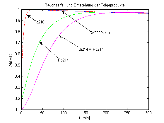 Alles im Gleichgewicht – oder etwa nicht ? Berechnung und Simulation von Aktivitäten aus natürlichen Zerfallsketten Ein Bericht.Das Verhältnis das manche Menschen zur Radioaktivität haben ist gelegentlich schon sehr sonderbar. Auf der einen Seite wettern sie aus ganz verständlichen Gründen gegen die Nutzung von Nukleartechnik vor allem mit Hinweis auf ihre Gesundheit, zum andern stecken sie sich dann aber eine Zigarette nach der andern an. Das passt nicht so ganz zusammen, da ein starker Raucher in seiner Lebzeit durchaus einige Sievert an radioaktivem Polonium in seinen Lungen deponiert und damit alleine durch die Strahlenexposition des Lungengewebes das Risiko massiv erhöht an Lungen- bzw. Bronchialkrebs zu erkranken. Die Synergiewirkung mit den andern Giftstoffen setzt dabei noch eins drauf. Zugute muss man diesen Menschen aber halten, dass zumindest über das strahlenbedingte Risiko bisher wenig aufgeklärt wurde. Die Tabakkonzerne haben bisher Einiges an Details dazu geheim halten können und selbst heute, wo der Zusammenhang erwiesen ist, gibt es immer noch keinen Warnhinweis auf den Tabakprodukten, der die Radioaktivität des Tabakrauchs zum Inhalt hat. Darum hier einmal ein Versuch der Aufklärung und ein Vorschlag, wie ein entsprechendes Warnetikett aussehen könnte. Ob es etwas nützt ist natürlich wie immer die große Frage.